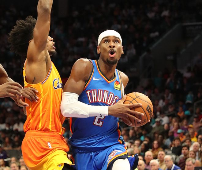 雷霆客场对阵黄蜂,雷霆缺少了杰伦、威金斯,黄蜂缺少了鲍尔、米勒、格威,另外黄蜂是背靠背作战,昨日打到加时赛,他们的体能不如雷霆。上半场比赛黄蜂表现不错,咬住了比分,下半场比赛雷霆发力后迅速扩大分差,三节战罢亚历山大不再出战,第四节黄蜂缩小一些分差,最终雷霆以13分优势拿下比赛。亚历山大三节打卡,19中13(三分4中3)得到33分4板7助,切特20中10得到25分8板2助,黄蜂方面布里奇斯16中6得到15分4板4助。